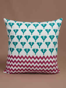 Red-Green-White Cotton Hand-Block Printed Cushion Cover